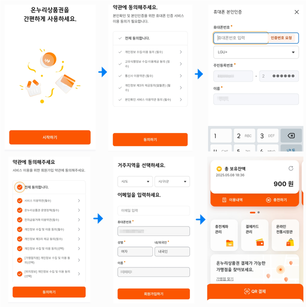 - QR코드 스캔: 가맹점의 QR코드를 스캔합니다.