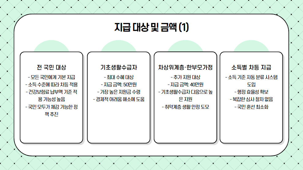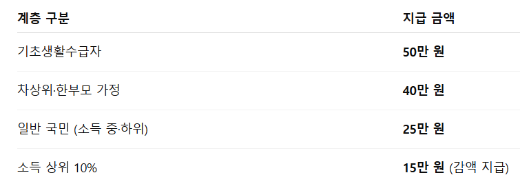 📊 지급 대상 및 금액: 전 국민 대상 + 소득별 차등 지급