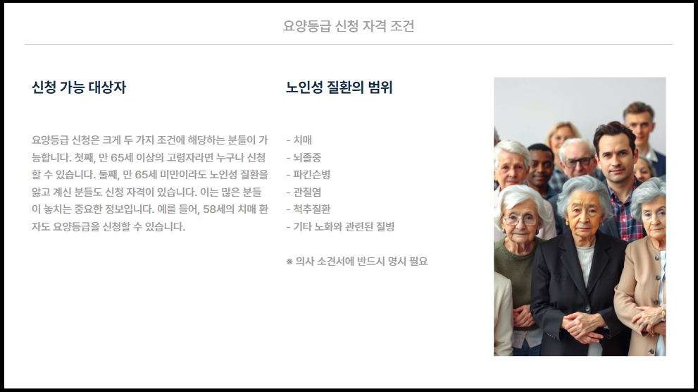 요양등급 신청은 다음 조건에 해당되면 가능합니다: