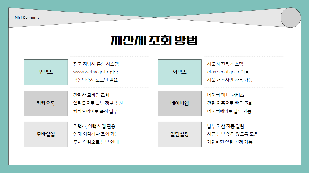 재산세 조회는 다음과 같은 사이트에서 본인 인증 후 확인할 수 있습니다.