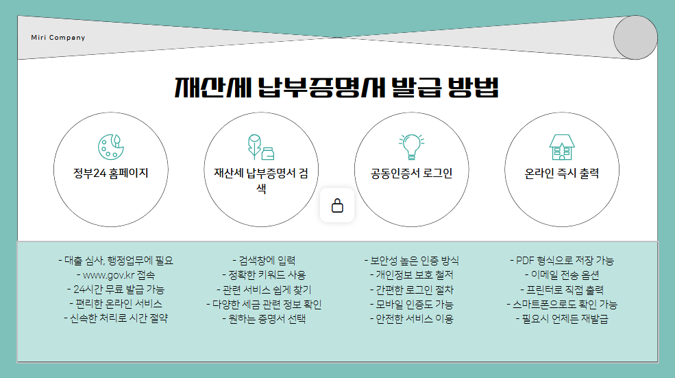 재산세 납부증명서는 대출 심사, 각종 행정업무에서 자주 필요한 문서입니다. 아래의 방법으로 손쉽게 발급할 수 있습니다.