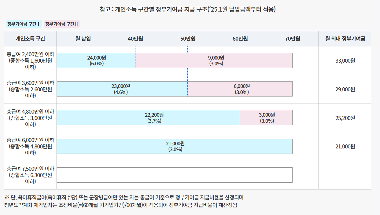 정부 기여금 지원 기준 (2025년 기준)